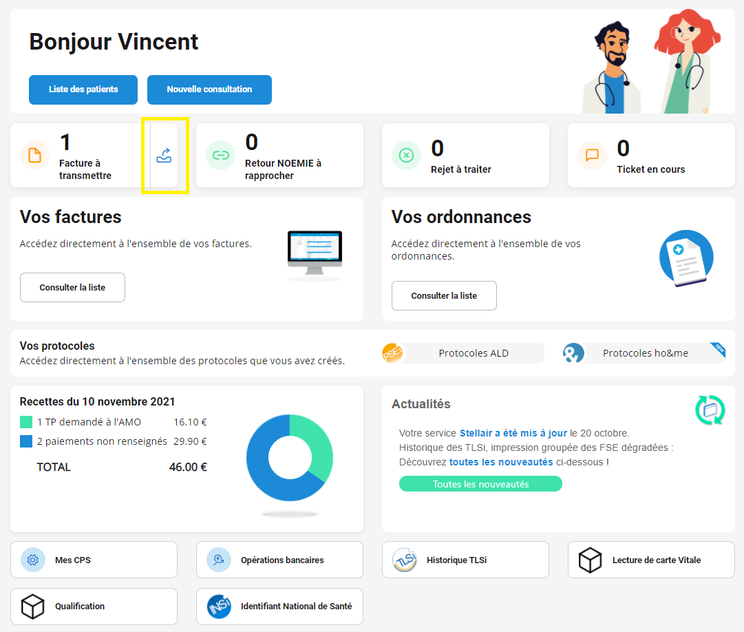 S'il y a des factures prêtes à être télétransmises, elles apparaissent immédiatement dans le compteur « Factures ».