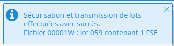 A l'issue de la télétransmission, un message d'information bleu apparaît quelques secondes en cas de succès :