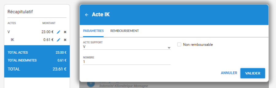 Saisissez le nombre d'IK et validez : l'acte est automatiquement ajouté à la FSE.