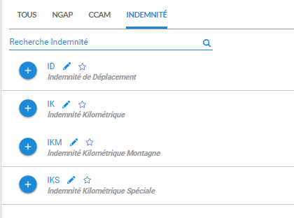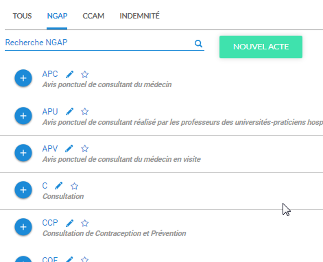 Cliquez sur la section « NGAP » : la liste des actes NGAP compatibles avec la spécialité de la CPS s'affichent.