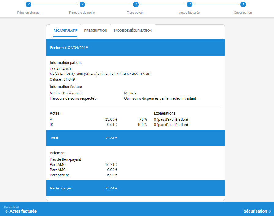 Pour signer la feuille de soins, cliquer sur le bouton en bas à droite « Sécurisation ».