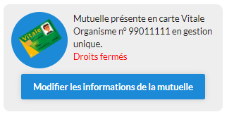 - Une mutuelle est enregistrée dans la carte Vitale et les droits sont fermés,