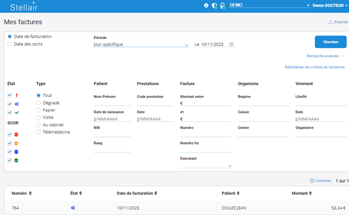 Via le tableau de bord Stellair, à partir de Mes factures,