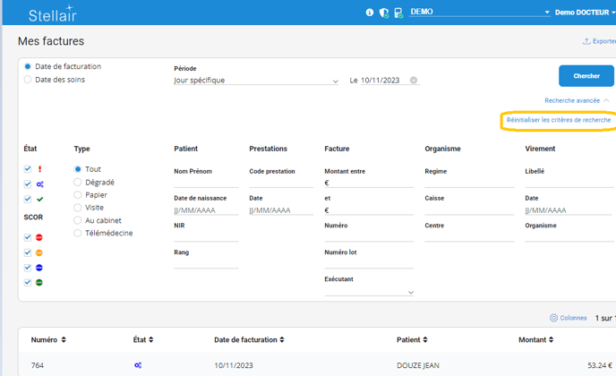 Cliquez sur Réinitialiser les critères de recherche pour réinitialiser les champs de recherche.