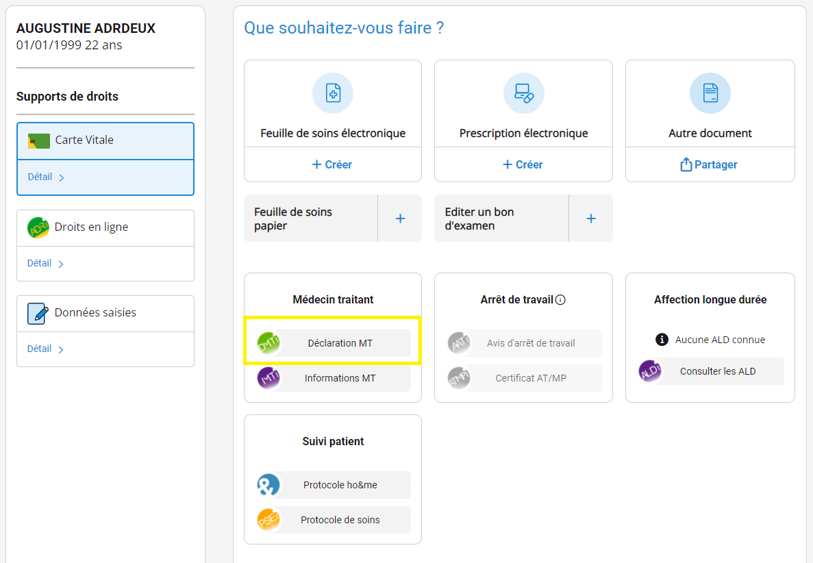 Sur l’écran de détails d’un patient, cliquez sur le bouton "Déclaration MT" .