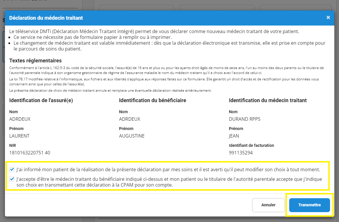 Cocher les cases de validation obligatoires et cliquez sur le bouton "Transmettre".