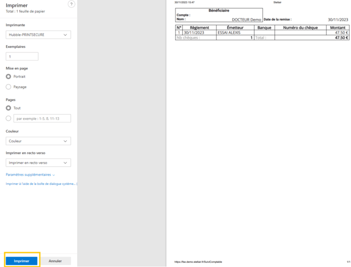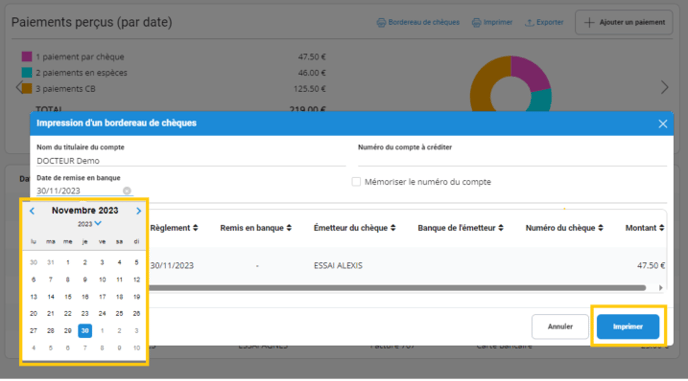 Les chèques sont marqués pour éviter de les ajouter dans la prochaine impression.