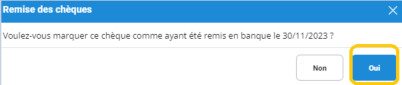 Cliquez ensuite sur Marquer pour indiquer que les chèques ont été remis à cette date. Cliquez sur Oui.