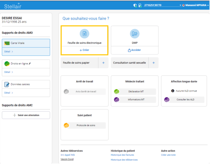 Pour effectuer une Télé-expertise, commencez par cliquer sur créer une feuille de soins électronique.