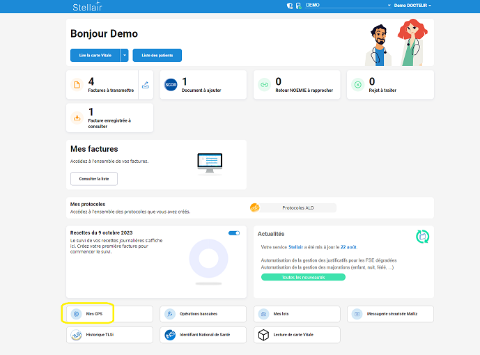 Depuis le tableau de bord Stellair, cliquez sur le bouton "MES CPS"
