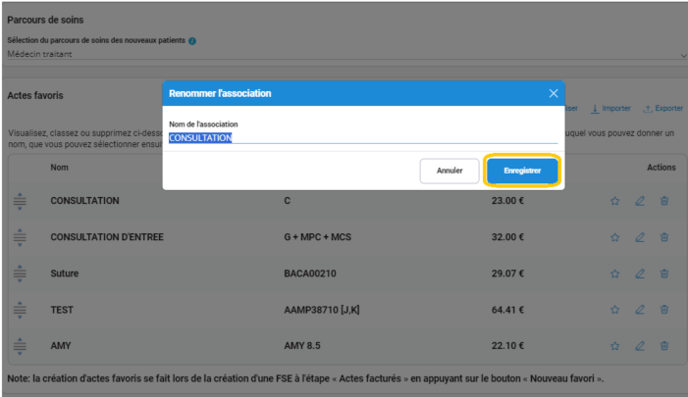 Dans la partie sur les actes favoris, dans les actions a faire, vous avez 3 options (supprimer, renommer ou déplacer) un favori.