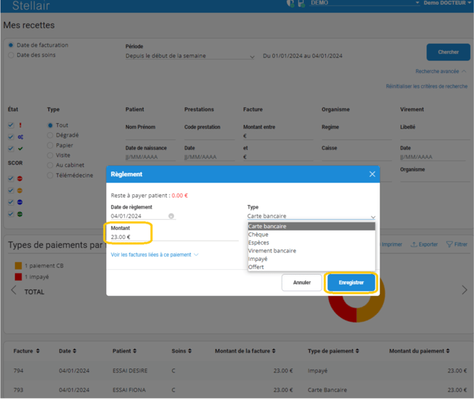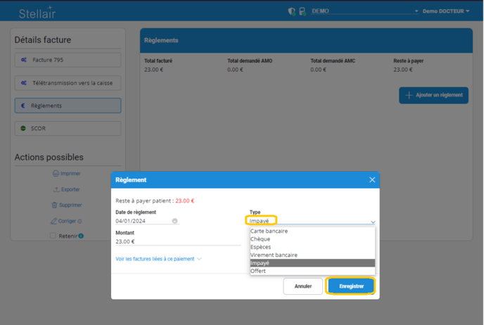 Découvrez comment ajouter un règlement de type “impayé” lorsque votre patient n’est pas en mesure de régler sa consultation dans Stellair Intégral.