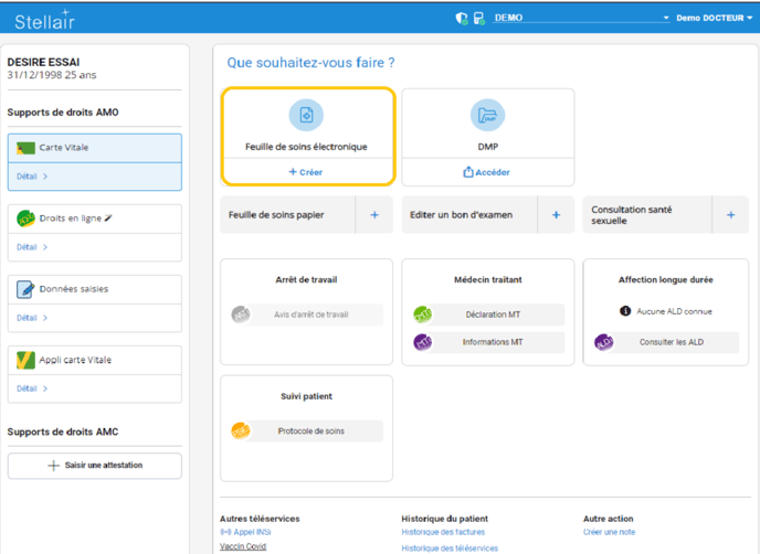 Cliquez sur feuille de soins électronique: