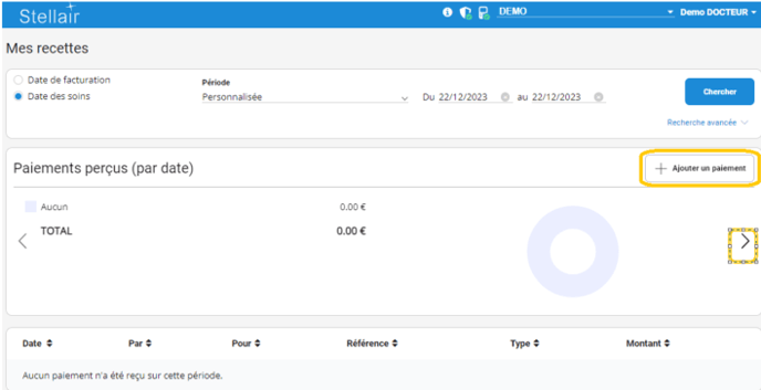 2. Faites défiler vers la droite les différentes vues en cliquant deux fois sur la petite flèche, jusqu'à atteindre la section des Paiements perçus (par date).