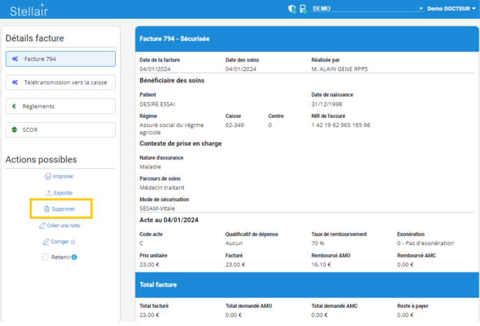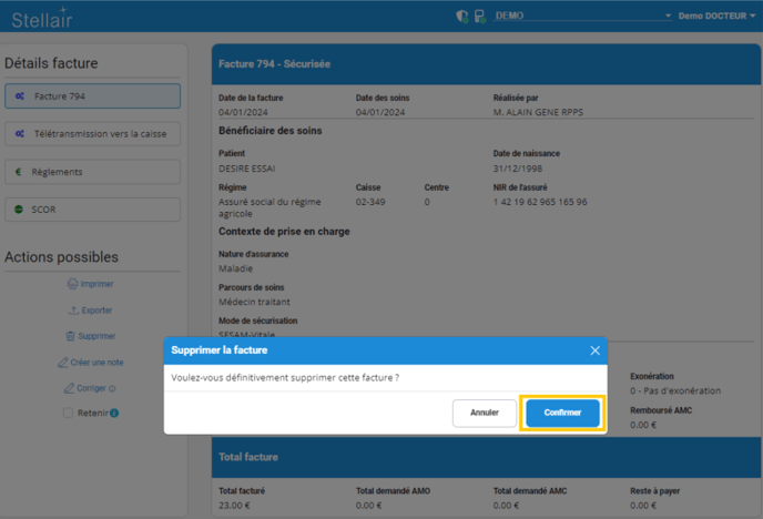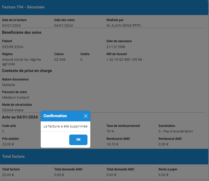 Attention : une facture télétransmise ne peut plus être supprimée