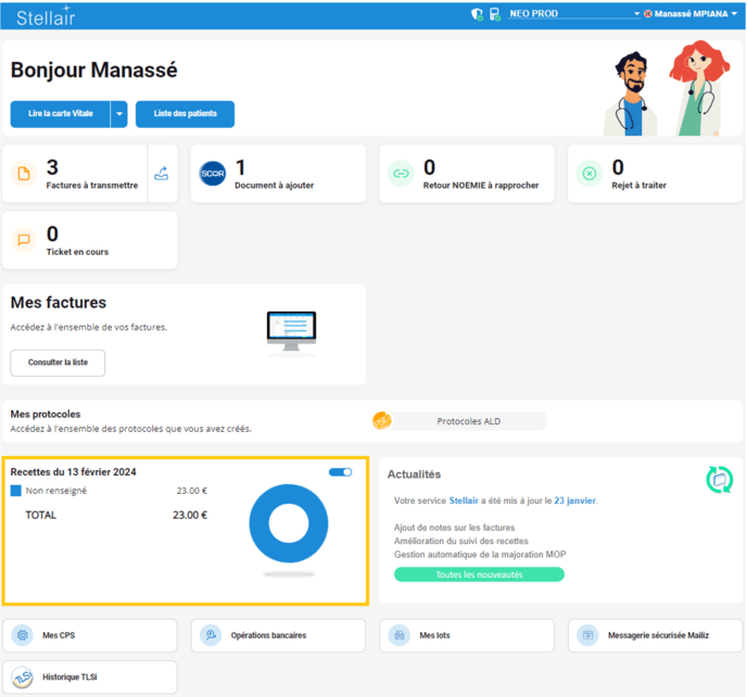 Pour ce faire, accéder aux factures en cliquant sur Recettes.