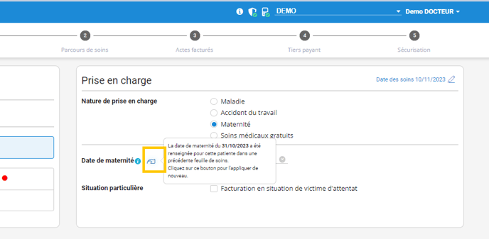 La date saisie lors d'une FSE liée au contexte de la maternité est enregistrée pour une utilisation ultérieure lors d'une future FSE.